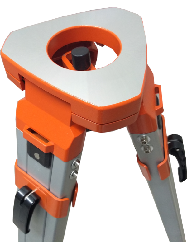 Tripé de alumínio com trava borboleta e trava rápida, pernas extensíveis, pintura eletrostática a pó resistente ao desgaste.
