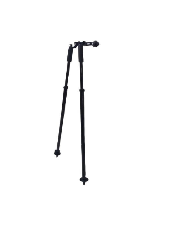 Bipé de alumínio com pernas extensíveis para bastão, com botão de ajuste nas duas pernas para facilitar o ajuste da bolha esférica no bastão (bastão não incluso).