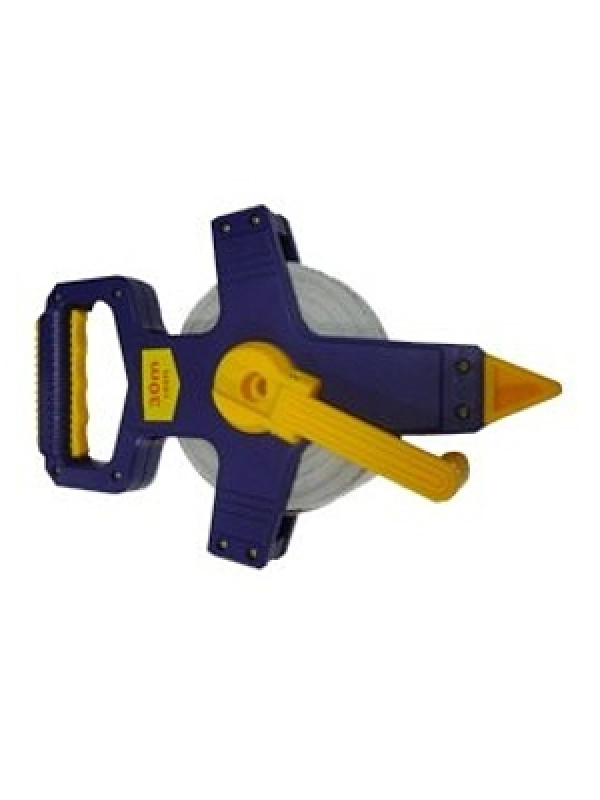 Trena Orient 30M em fibra de vidro para medições em geral, com suporte (carretilha) e ponteira de plástico.