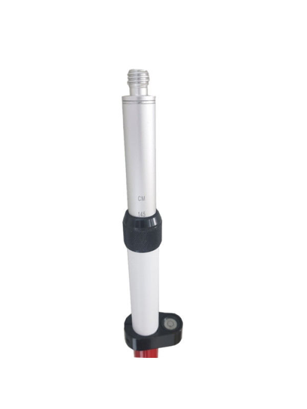 Bastão de 2,5 metros telescópico com trava de rosca e divisão em centímetros.